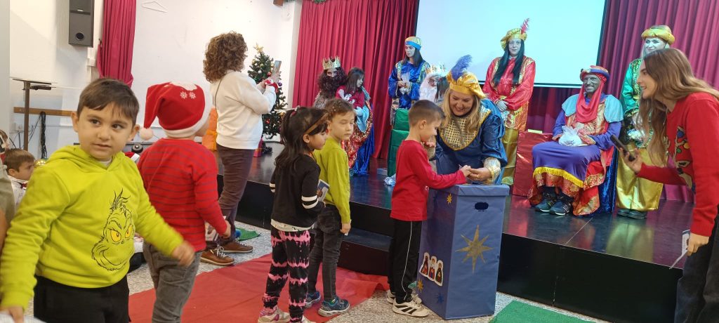 Pero la fiesta no terminó con la música, ya que hoy hemos vivido una mañana cargada de tradición y dulces momentos. La jornada comenzó con el esperado desayuno de churros con chocolate, una actividad que es ya una seña de identidad en nuestro centro y que no sería posible sin la estrecha colaboración entre el profesorado y las familias. Ver a padres, madres y tutores gestionando juntos este desayuno es el mejor ejemplo del trabajo en equipo que define a nuestra comunidad educativa. El broche de oro lo ha puesto la visita más esperada del año: los Reyes Magos de Oriente han hecho una parada en nuestro colegio para recoger las cartas de los más pequeños en su buzón real y repartir caramelos e ilusión a partes iguales. Con el sabor del chocolate aún presente y el brillo en los ojos por la visita de Sus Majestades, todo el equipo del centro os desea unas muy felices fiestas y un próspero año nuevo.